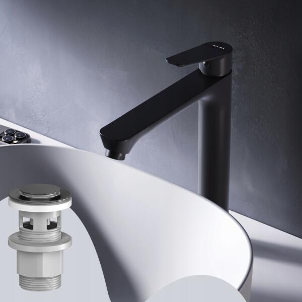 Am. pm FTA92222 magas mosdócsaptelep leeresztőszeleppel, fekete (FTA92222)ALLEGRO