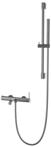 Kádtöltő csaptelep zuhanyszettel Szín: szálcsiszolt gun metal Anyag: rozsdamentes acél A csaptelepek tisztításához a felület felmaródásának elkerülése érdekében NE használjon savas alapú tisztítószereket (kivéve citromsav)