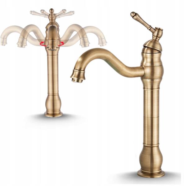 Ari Fürdőszobai Csaptelep Álló Pultra Szerelhető Magas Mosdó Retro Csaptelep Arany Ari (Bateria Umywalkowa Retro 07)
