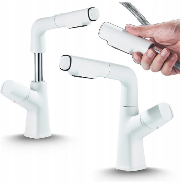 Ari Mosdó Csaptelep Fehér Fürdőszobai Csaptelep Kihúzható Álló kifolyócső Magas (Bateria Umywalkowa Nablatowa 0438)
