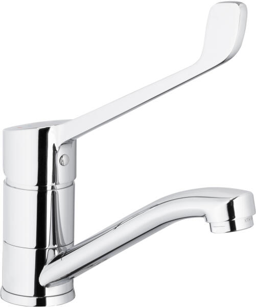 A speciális csaptelepeket olyan területeken való használatra tervezték, ahol a hagyományos megoldások nem képesek hatékonyan ellátni funkciójukat. Ide tartoznak például a kórházi mosdók műtéti mosdókkal ellátott fürdőszobák, a fogyatékkal élők számára kialakított WC-k és a vendéglátóipari létesítmények konyhái. A Medico New kollekciót az ilyen típusú helyiségek és az azokat használó emberek igényeit szem előtt tartva fejlesztették ki. A Medico New keverők jellegzetes, hosszúkás fogantyúi megkönnyítik a vízáramlás bekapcsolását és szabályozását, ami a mozgáskorlátozottak számára sokkal kényelmesebbé teszi a használatát. Ez a praktikus megoldás a csaptelep könyökkel történő nyitását és zárását is megkönnyíti, amit gyakran gyakorol az egészségügyi személyzet vagy a vendéglátóipari személyzet, ahol a higiénia különösen fontos. A Medico New kollekció speciális fürdőszobai és konyhai csaptelepek széles választékát kínálja különböző hosszúságú kifolyókkal, így azok a legkülönbözőbb igényekhez igazíthatók. Műszaki adatok: - szerelvény: 1 lyuk - típus: falra szerelhető - anyag: sárgaréz - vezérlőelem: ø35 kerámia szabályozó - levegőztető: igen - vízhozam [l/min]: 12,5 - üzemi nyomás [atm]: 3 - vízhőmérséklet [°C] max: ≤90/65 - akusztikai csoport: II - kifolyócső: forgatható - kifolyócső hossza [mm]: 156 Csomag tartalma: szerelvénykészlet tömítésekkel, rugalmas csatlakozók M10x1/G3/8" (L=410 mm, 2 db) Garancia: 5 év a keverő szivárgásmentességére és a kerámia vezérlők működésére Tanúsítványok és nyilatkozatok: a PN-EN 817 szabvány szerint gyártott, higiéniai tanúsítvány, megfelelőségi nyilatkozat