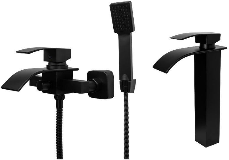 Gamma Elva Fürdőkádtöltő és Magasított Mosdó Csaptelep Szett - Vízesés vízsugarú, Fekete (BEAW-BK-BEAUW-BK) - rent-xgranit