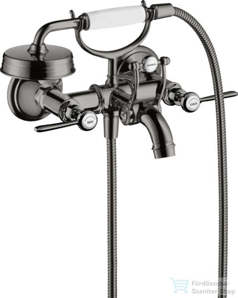 Hansgrohe AXOR MONTREUX kétkaros kádtöltő csaptelep zuhanyszettel, polírozott fekete króm 16551330 (16551330)