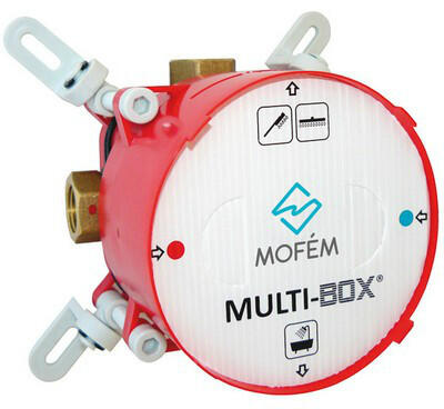 Mofém Multi box falon belüli egység Trend Plus és Junior Evo falba épített csaptelepekhez. Jellemzői: Állítható rögzítő fülek, utólagos finom igazítás, széles beépítési mérettartomány (85-112 mm), párazáró korong, 4db 1/2-os csatlakozás 2db bemenet+2db kimenet, 1 db záró dugóval, átöblítő elemmel, hőmérséklet korlátozással, zajcsökkentő elemekkel. A MULTI-BOX univerzális egység alkalmas az alább felsorolt kódszámú falsík alatti rendszerek fogadására: Trend Plus Süllyesztett kádtöltő csaptelep falon kívüli része-151-1551-10. Trend Plus Süllyesztett zuhany csaptelep falon kívüli része-153-1551-10. Junior EVO Süllyesztett kádtöltő csaptelep falon kívüli része-151-0066-00. Junior EVO Süllyesztett zuhany csaptelep falon kívüli része-153-0065-00. Junior EVO Egyutas termosztátos zuhany csaptelep falon kívüli része-170-0006-00. Junior EVO Kétutas termosztátos zuhany csaptelep falon kívüli része-170-0005-00.