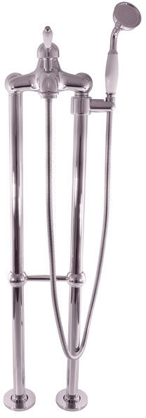 Kádcsaptelep, magas, szabadon álló zuhanyzóval.