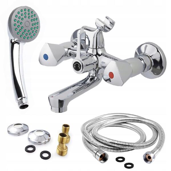 Zuhany Csaptelep Fali Kád Króm Fülhallgató Tömlő Ezüst (400155)ALLEGRO